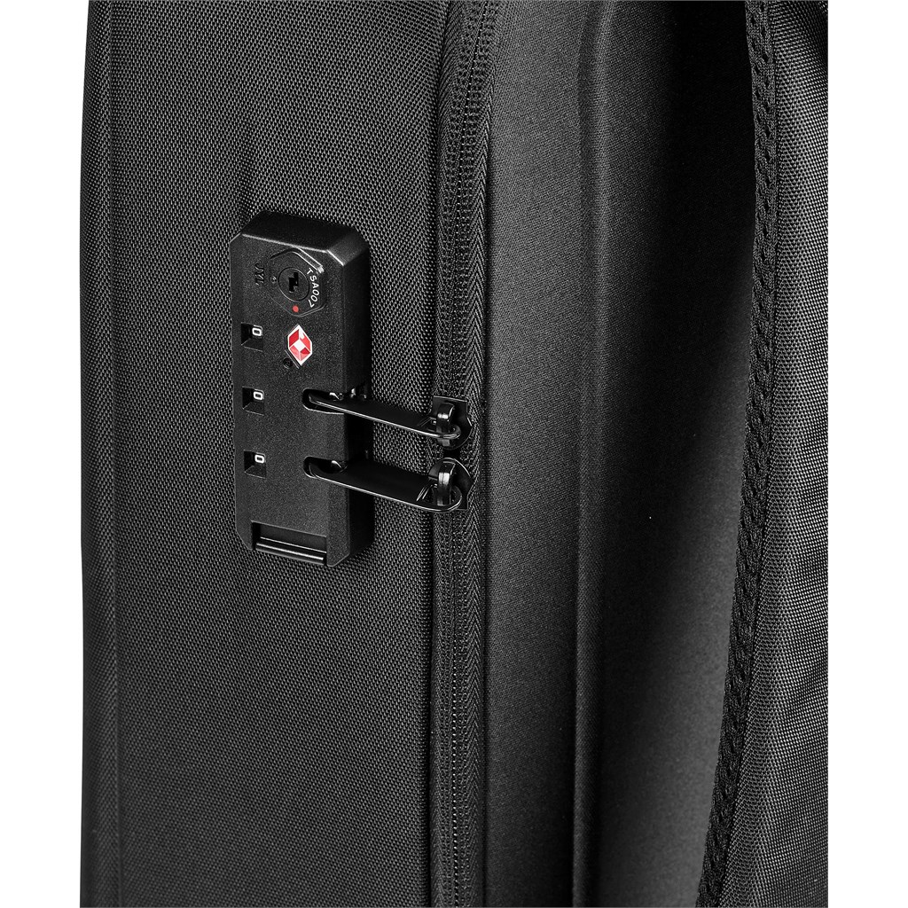 The mix of materials used in the construction of this executive laptop backpack gives it strength and durability, to add to the stylish design. The TSA lock adds a valuable security feature to protect your valued possessions. The external charging point allows you to keep a power bank in the bag and easily access it to charge your phone.