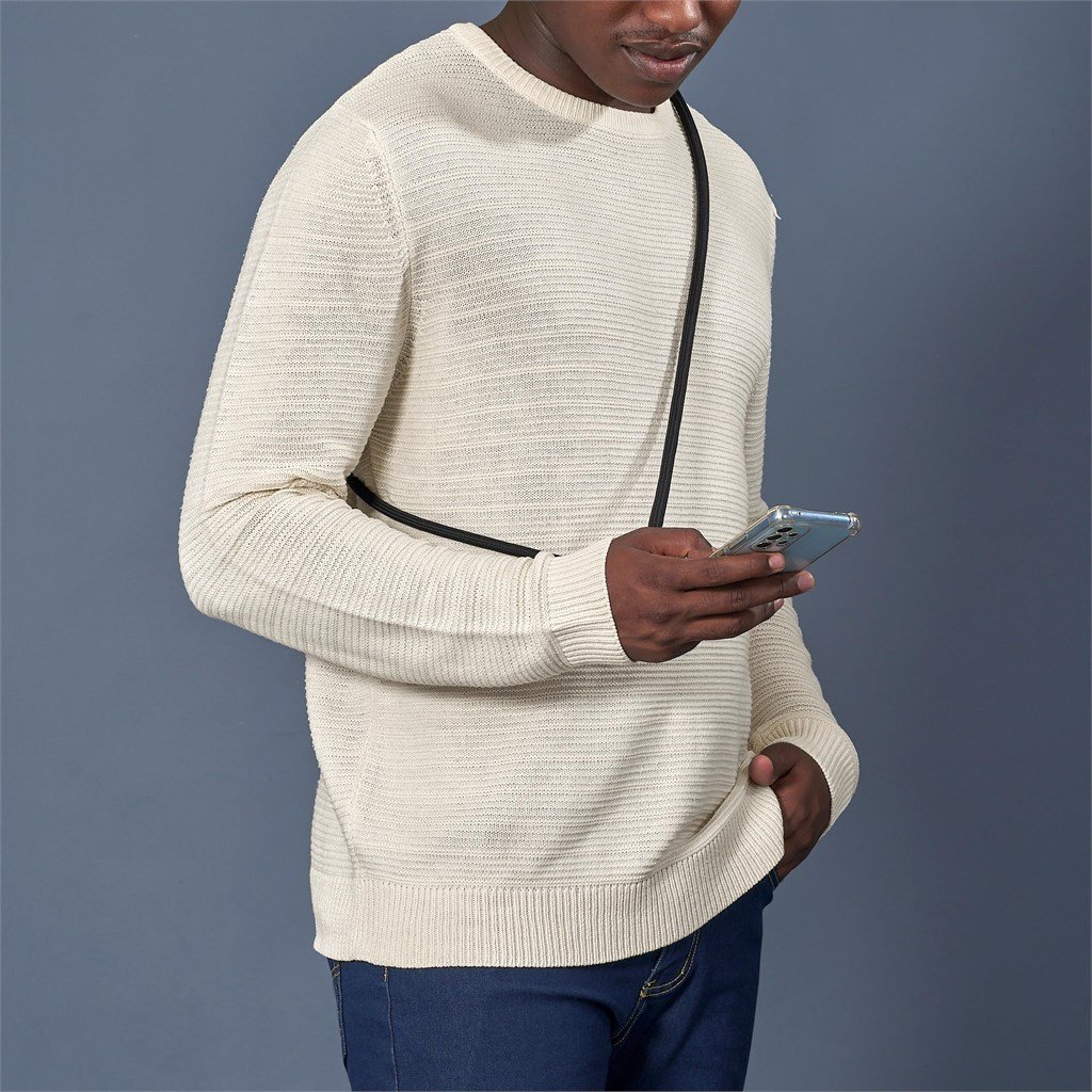 Phone straps have become a popular way to not only carry a phone, but also to help prevent dropping or misplacing it. This is a universal version, which fits between a phone and a phone case, with a loop popping out of the charger opening of the case. That loop is then attached to the clip of the adjustable cord. By adjusting the length of the cord, you can choose to wear it as a crossbody, a shoulder strap or a neck strap. This is an elegant and comfortable phone strap, with a thick, tubular cord design, and it’s packaged in a black, microfibre, zippered pouch. Strap: