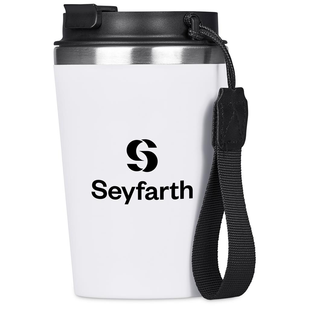 Taking your hot beverage with you gets better and better with this double-wall reusable coffee tumbler. It has a matte plastic outer wall, with a food grade stainless steel inner, to keep your drinks hotter for longer. The secure screw-on lid has a drinking port with a cap which can be closed when you’re on the move, and popped open when you wish to sip from it. The finger loop helps to keep the rest of your hand free for carrying other things, like your phone. The loop can be removed should you prefer to use the tumbler without it.